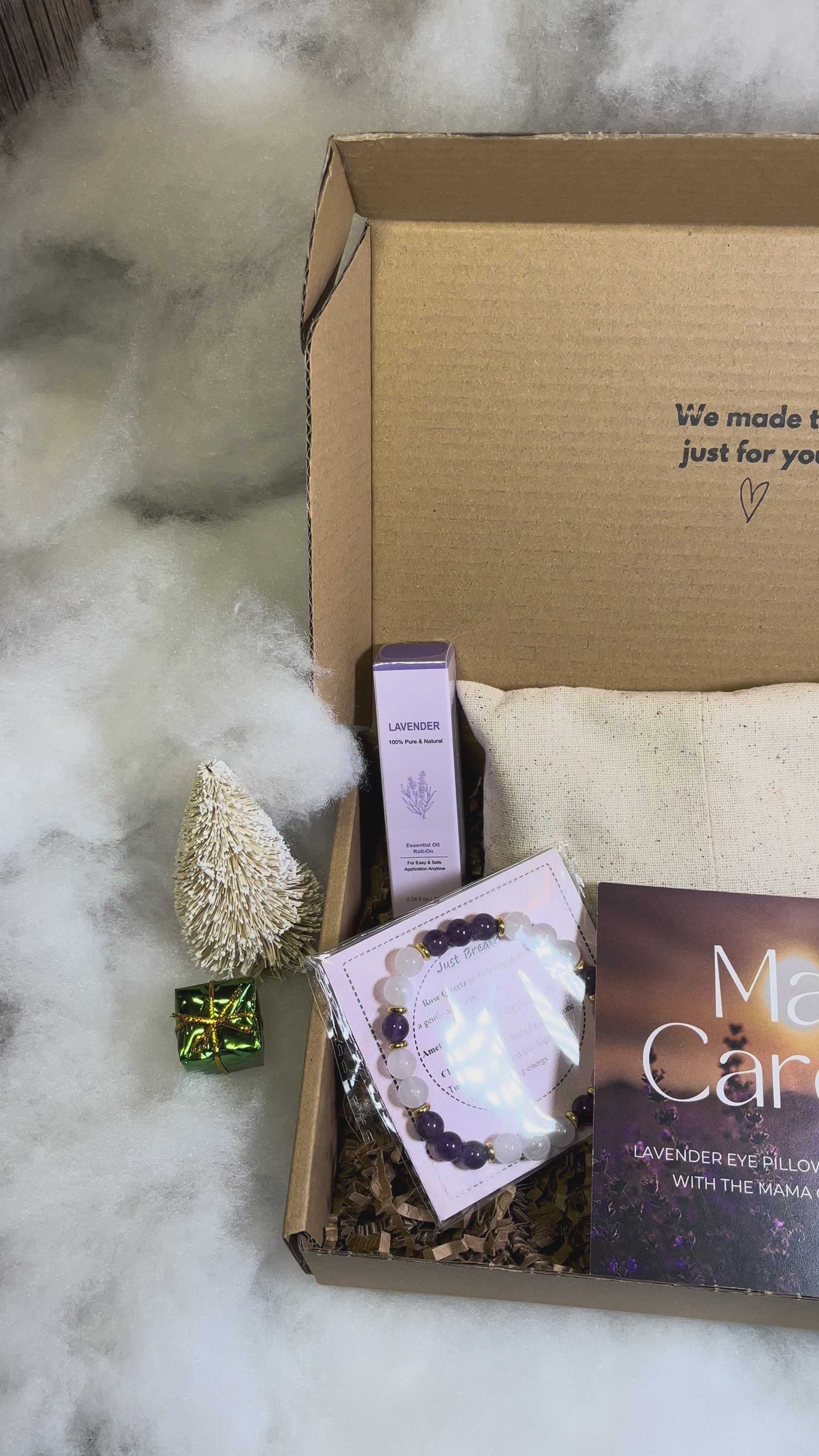 What’s inside: Lavender eye pillow, lavender oil roller, a crystal reminder bracelet, 3-part guided audio series.